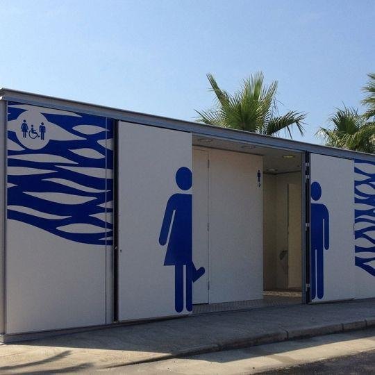block place the toilets on NorthWest or West side of that building.